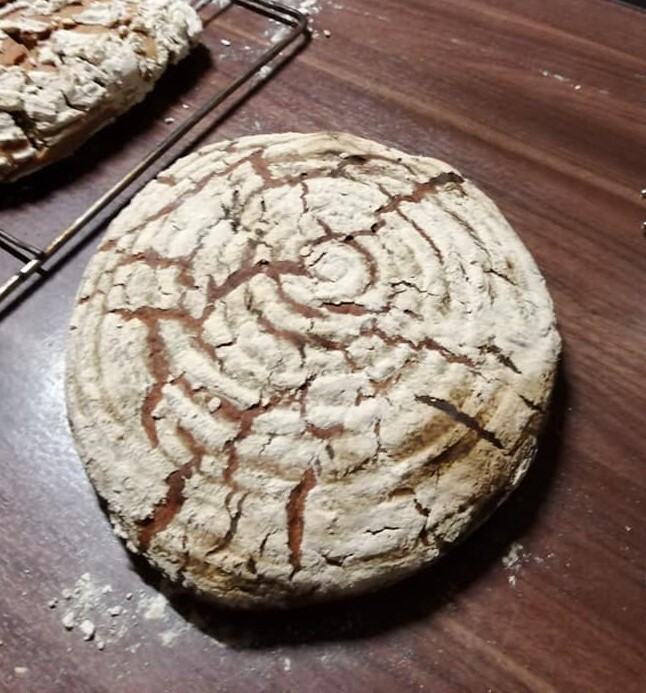 Předpověď počasí se v sobotu bohužel vyplnila, a tak jsme dopoledne s dětmi strávili povídáním, hraním deskových her, malováním, sušením křížal a výrobou hliněných zápichů pro naši komunitní zahradu namísto původně plánovaných pohybových her venku. Jejich rodiče měli plné ruce práce s přípravou živých chlebových kvásků, následným kynutím, zaděláváním a pečením chleba. S přestávkou na oběd a odpoledním klidem je tento pracný proces zaměstnal až do pozdního odpoledne. Společně jsme pak zhlédli také prezentaci o výhodách a přínosech konzumace pravého kváskového chleba a stihli ještě navštívit další výběh pro kozy umístěný v remízku za loukou. V čase, kdy se většina z nás kochala krásou přírody v okolí statku, nám babičky, které se procházky v sychravém počasí zúčastnit nechtěly, uvařily výbornou večeři z výpěstků, které jsme si s sebou přivezli z naší zahrady.
